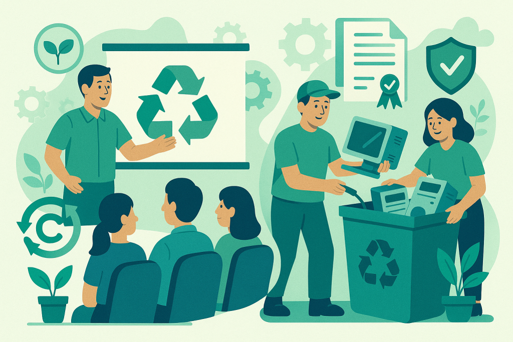 Acompa帽amos a tu empresa en todo el proceso de reciclaje de electr贸nicos: desde la capacitaci贸n de tu equipo hasta el manejo adecuado de los residuos.